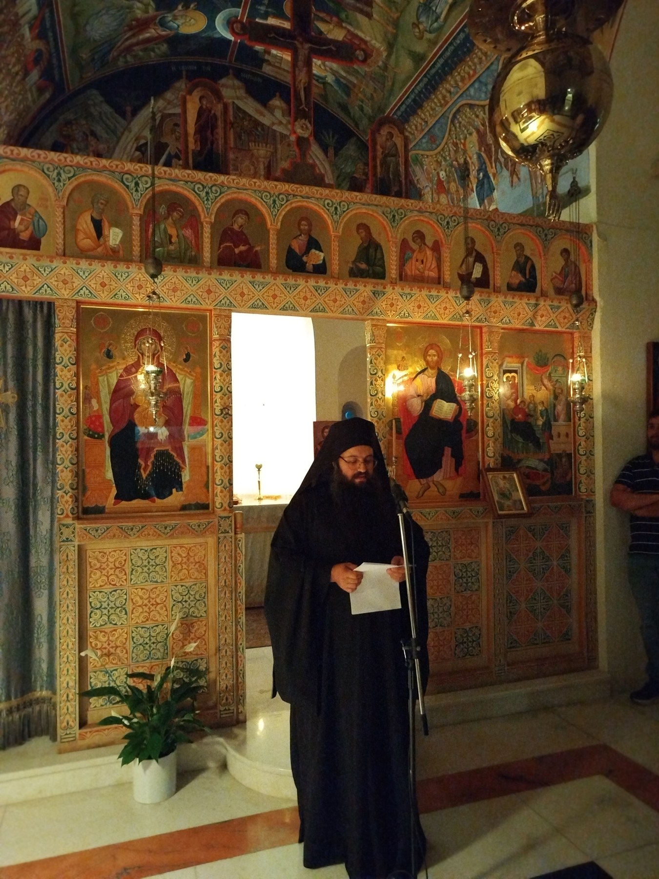 Με την ευλογία του Καθηγουμένου της Ιεράς Μονής Σίμωνος Πέτρας Γέροντος Ελισαίου και τις ευχές της Καθηγουμένης του Ιερού Κοινοβίου Γερόντισσας Νικοδήμης, η Ιερά Πανήγυρις τελέστηκε προεξάρχοντος του Αρχιμανδρίτου Αμβροσίου Ματσά εκ της Ιεράς Μονής Αγίας Παρασκευής Μακρινίτσας Πηλίου, συμμετεχόντων του Αρχιμανδρίτου Θεοδοσίου Οικονομίδη και του Πρεσβυτέρου Παντελεήμονος Χριστίδη, παρουσία αδελφών των Μονών, μελών της Διοίκησης και εργαζόμενων του Ιδρύματος, καθώς και πλήθους πιστών.